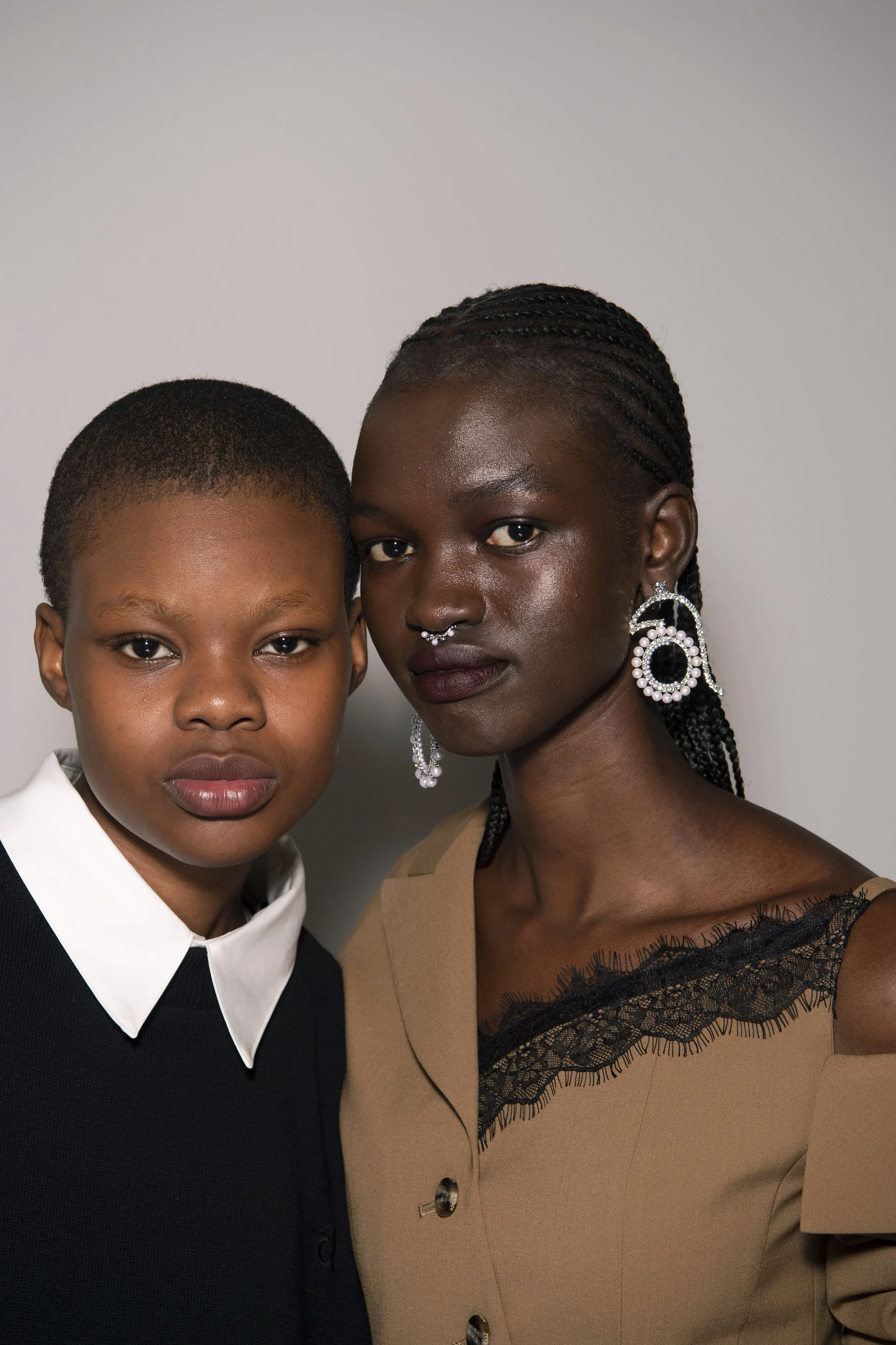 Brows are soft yet structured, complementing the ethereal skin and bold lips.